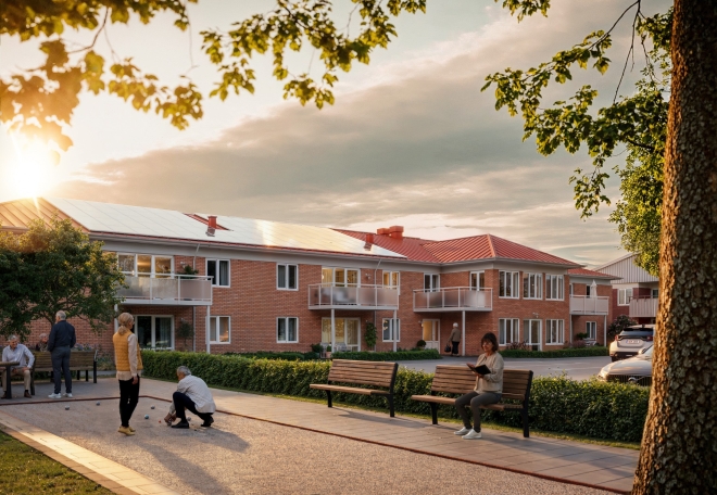 Trygghetsboende är en boendeform som erbjuder mycket mer än bara en bostad. Här finns gemensamhetsytor, samlingslokal med kök. hobbyrum, boulebana och en fin utegård - allt anpassat för att skapa en trygg och levande miljö. En trygghetsvärd finns på plats vissa delar av dagen och bidrar till att bygga gemenskap och ordna aktiviteter tillsammans med de boende.