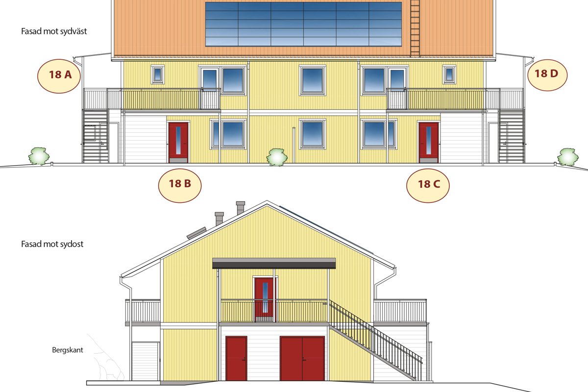 Hammargårdsvägen 18A-D byggdes 2020 och består av 4 lägenheter. Här bor du antingen i markplan med uteplats eller en trappa upp med dubbla balkonger.