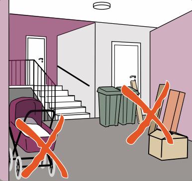 Trapphus och andra utrymmen som är till för utrymning ska vara fria från saker som kan börja