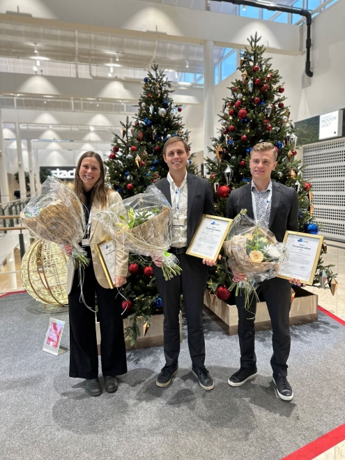 Stipendiaterna från Chalmers Tekniska Högskola och Lunds Tekniska Högskola fick blommor och diplom och fick sedan presentera sina välgjorda arbeten för publiken.